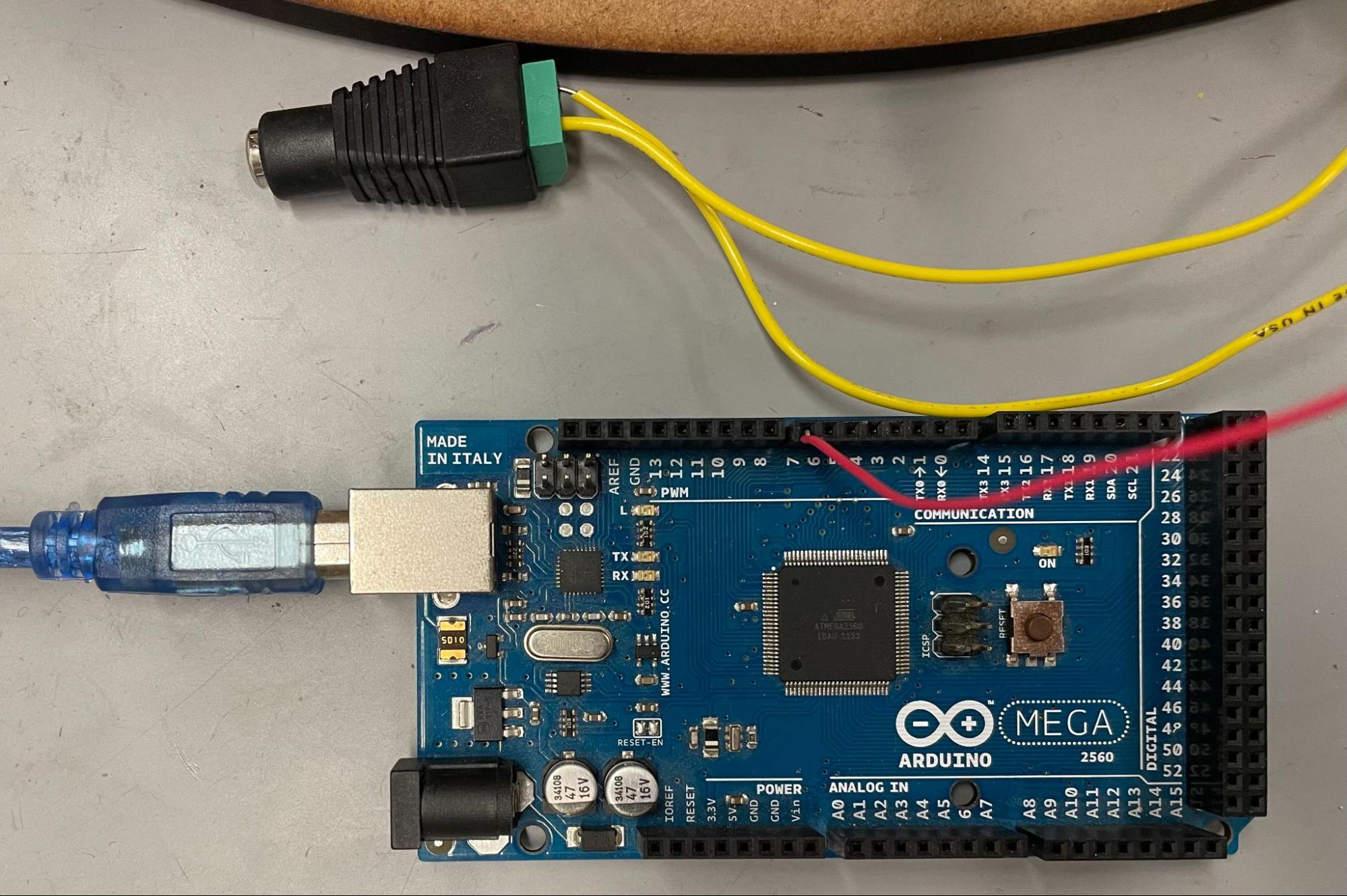 Our final design included the addition of a strip of LEDs along the ends of the enclosure. These lights need to be powered with a 5V supply and controlled with a digital pin on an Arduino. To work on the LEDs and motors synchronously, we started controlling each on a different Arduino. In the end, there was no reason to consolidate to one device.