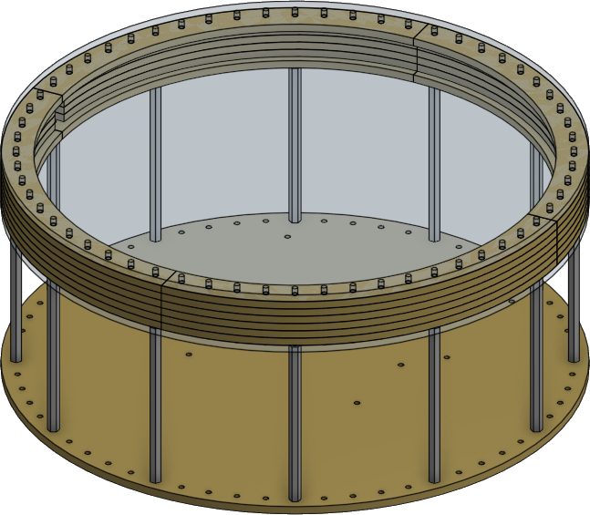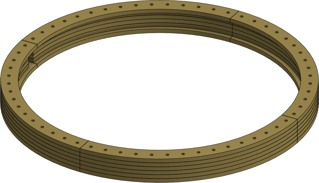 To make the walls that enclose the sand, we divided the circle into four parts and used ¼” MDF which was bolted and glued together. In order to save material and create room for LEDs that stuck to the inner walls of the enclosure, the width of the walls varied as shown below.