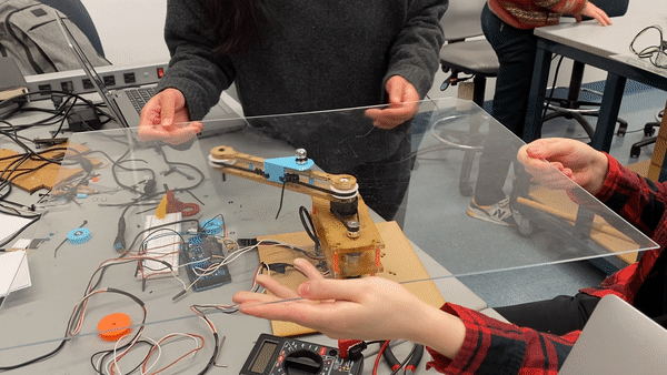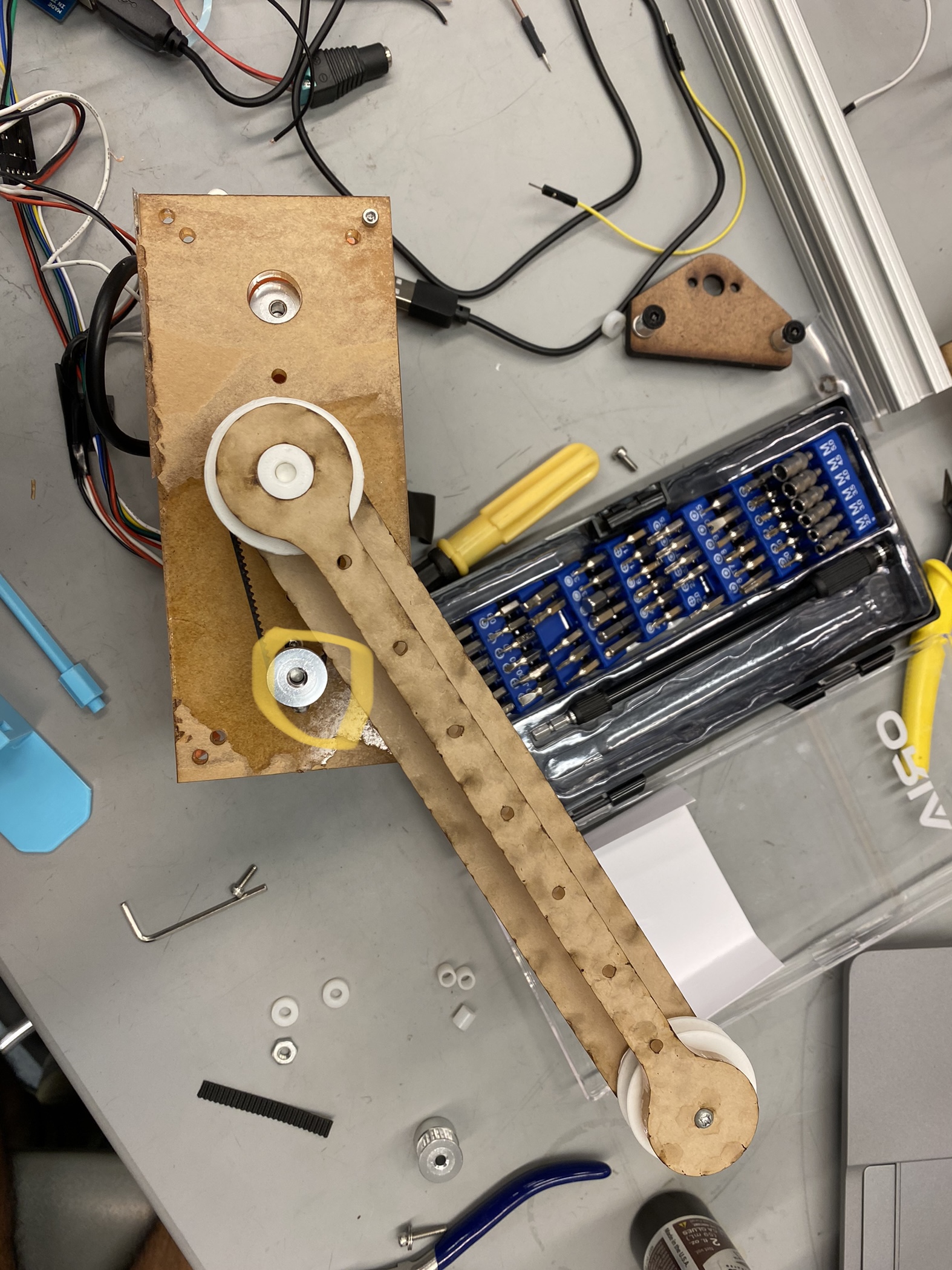 The main focus of this sprint was on the software. In further testing motor motion, we realized that when changing the angle of the arm, we also changed the magnet’s distance from the sensor because their belt pulleys shared an axle. We had to account for this in the inverse kinematics to determine the necessary motor angles based on the desired location of the magnet.