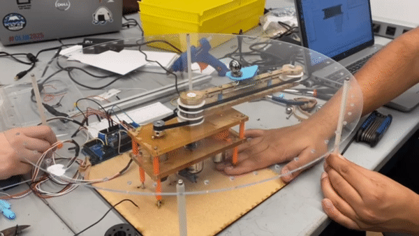 One thing we learned was the importance of using the right parts for the job. We started out with DC motors with too much torque, so they overshot the target more frequently than not, making the encoders less helpful in determining position than we thought they would be. When we switched to using stepper motors, it became a lot easier from a software standpoint since they are more designed to move to specific positions. However, these motors had less torque than anticipated. The accuracy of their positions worsened when they started to lose steps combatting the friction of the ball against the sand. If we could redo this project, we would have specced out the right motors more thoroughly at the start.