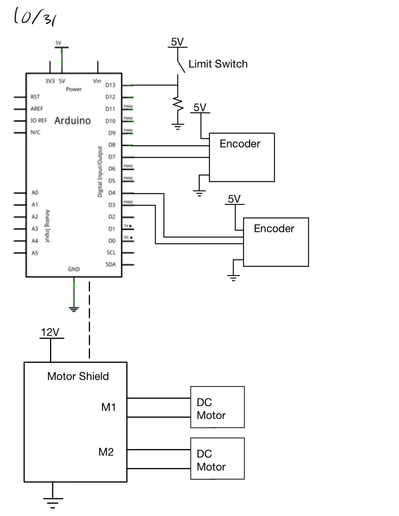 The electrical design did not change significantly between our first two sprints. Our plan at the time was to continue using DC motors with encoders.
