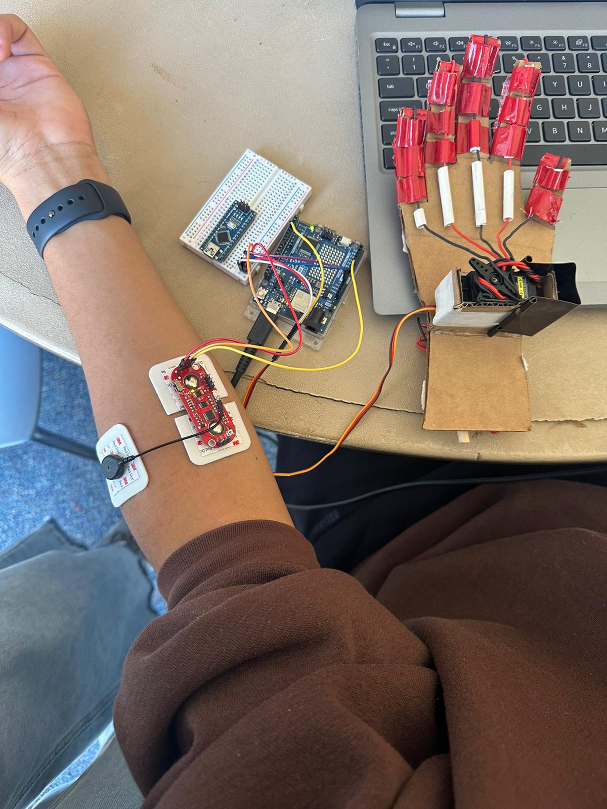 We are a group of undergraduate students who developed a prosthetic arm that mimics hand movements!