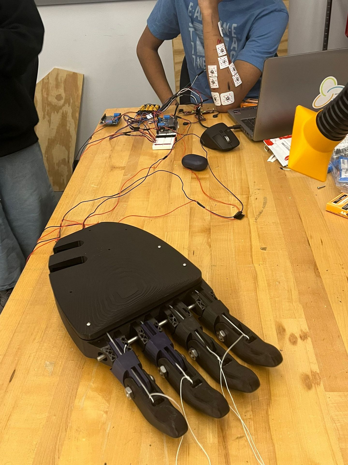 We created a prosthetic arm that is capable of using sEMG (surface electromyography) data to mimic user input live using machine learning.
