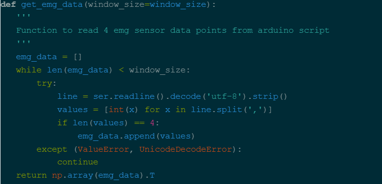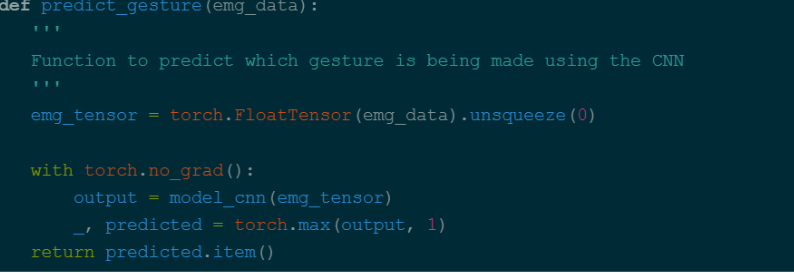 Lastly, we create a function which sends our prediction over to the the arduino so that the firmware code can move motors based on what the gesture was.