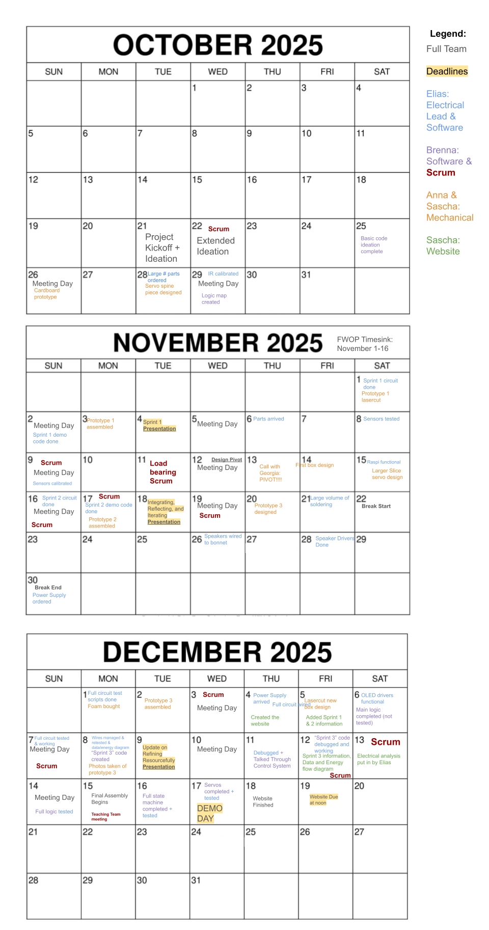 Here is the timeline of the sprints and deadlines throughout the project. It also has the dates where we completed certain milestones for the project.
