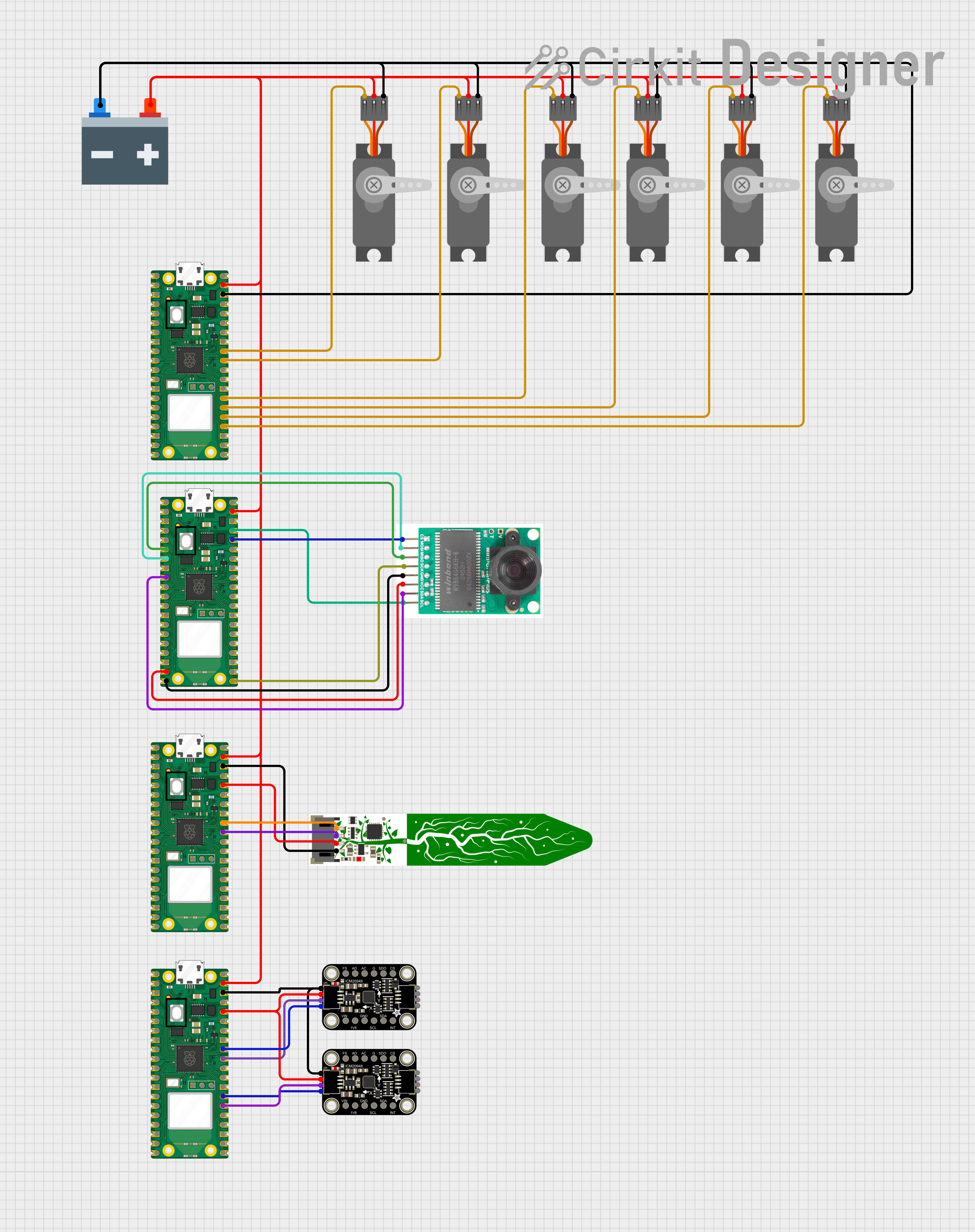 We used four Raspberry Pi Pico boards to control the angle of the servo motors and to recieve data from the camera, sensor, and IMUs.