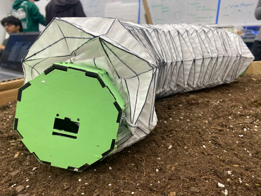After testing out what worked and did not work with our first iteration, we started designing the next. We wanted to try using smaller servo motors and making the robot lighter overall, however we found that the smaller motors did not have high enough torque to accomplish the movements we desired. We started designing more mechanisms, such as the "head" and "tail" of the snake, and the sensor-lowering mechanism. We also starting testing and calibrating our soil moisture sensor in different levels of wet soil. A major goal for this sprint was getting the snake to move in a serpentine movement, which we managed to do using an arduino. This sprint also involved getting the live dashboard set up and starting to iterate on the skin design.